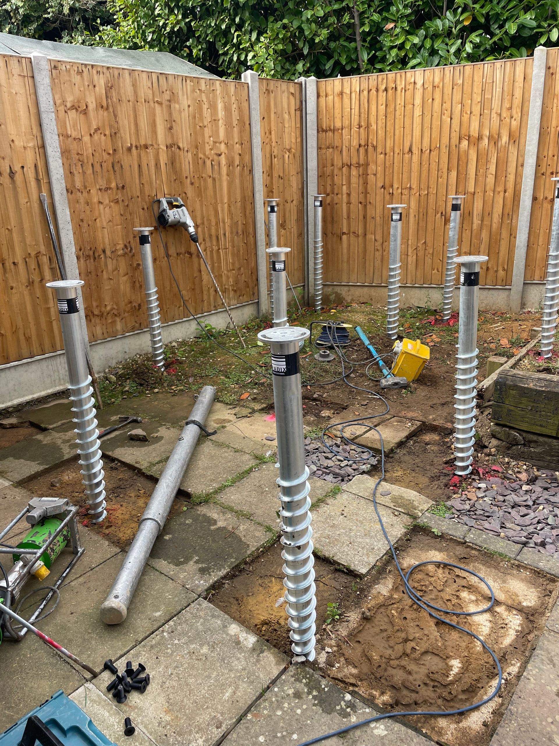 Here's an example of a outdoor office installed in Maidstone using the no mess ground screw pile system.